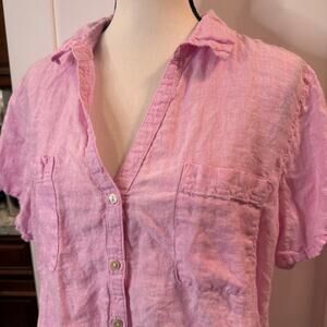 Beautiful pink linen C&C California v-neck button up blouse. In good used condition. I’m just not skilled enough to iron and steam linen haha
