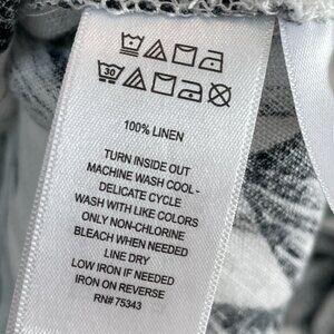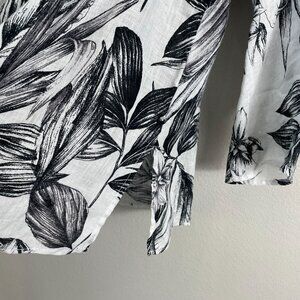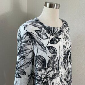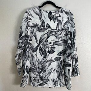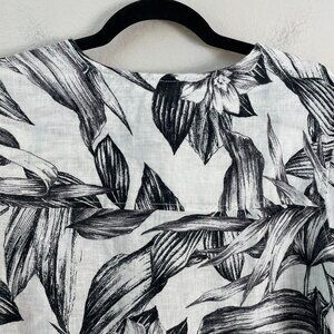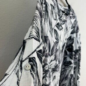 C&C California Womens Plus 1X 100% Linen Black White Floral Button Up Tunic Top