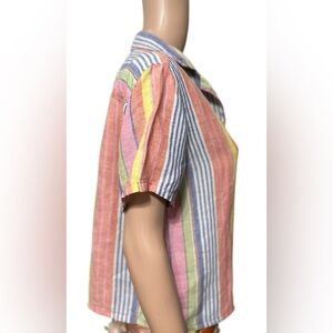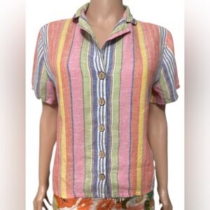 C&C California Womens S Shirt 100% Linen Button Front Rainbow Stripe