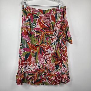 C&C California Women's Size XL Floral Faux Wrap Midi Skirt Embroidery