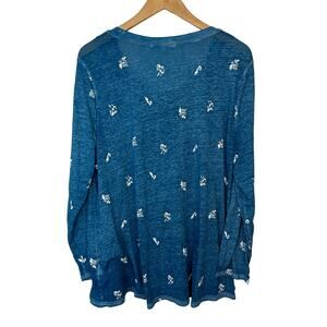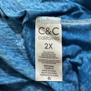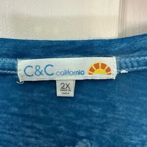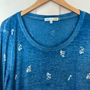 C&C California Women's Top Plus Size 2X Blue White Floral Pullover Burnout Tee
