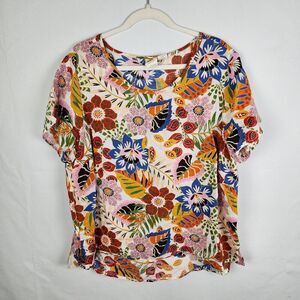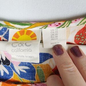 C&C California Women's Tropical Tunic Top 100% Linen Size 1X Resort Vacation