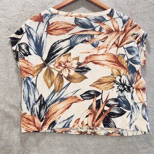 C&C California Womens White Tropical Floral Linen Crop Top Size Small Oversized