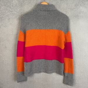 C\&C California wool-blend turtleneck sweater in size S, featuring a cozy colorblock pattern in gray, orange, and pink. Soft, stylish, and perfect for casual fall or winter layering.