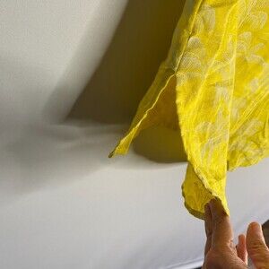 C&C California Yellow 100%Linen Sundress Palm Tree Beach Print Hi-Lo Size XS