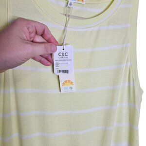 C&C California Yellow White Striped Sleeveless Dress Drawstring Waist Pull Over