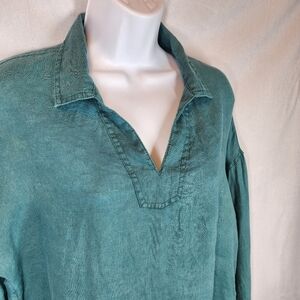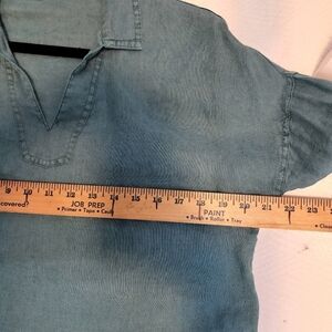 c&c California blue/green 100% linen line sleeve v neck. size small.
