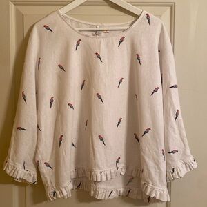 C&C California white linen blend oversized boxy top ruffle hem/cuff macaw size M