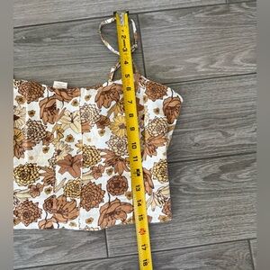 C&C California|Brown Floral linen matching set in Spaghetti Strap Top & Shorts•