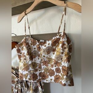 Chic floral set with spaghetti straps. Features a top and matching shorts in a beautiful floral pattern.