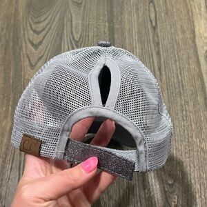 CC Cap Baseball Trucker Hat Summer Mesh Glitter Ponytail Gray One Size