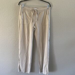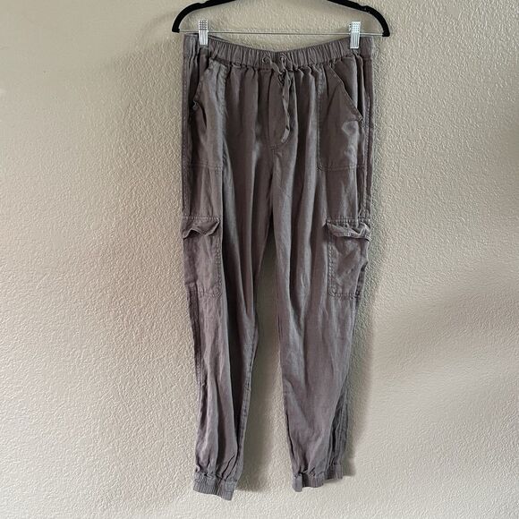 C&C Cargo Pants Womens Large Grey Linen Beach Coastal Lagenlook Pull On Jogger