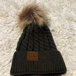 C.C Charcoal Lattice Crossover Stitch Pattern Beanie mom and baby