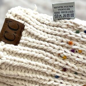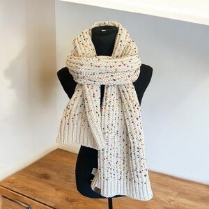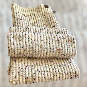 C.C Chunky Chenille Knit Scarf Oblong Neck Warmer Oatmeal Confetti 13”W x 80”L
