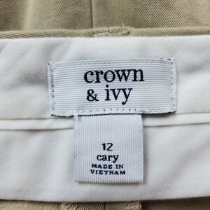 CC - Crown & Ivy Womens Cary Dress Pants Trousers 12 Short Petite Khaki Tan NWT