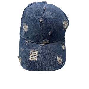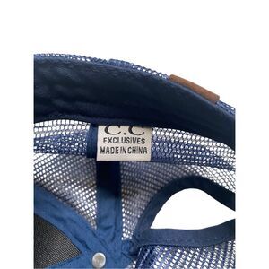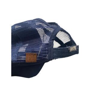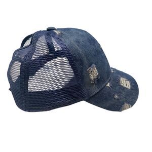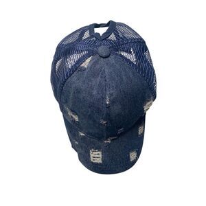 CC Distressed Denim Mesh Back High Ponytail Ball Cap Trucker Hat Adjustable