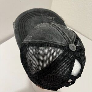 CC Exclusives Ponytail Hat Womens Baseball Cap Black Distressed Strapback Mesh