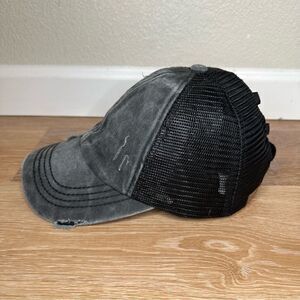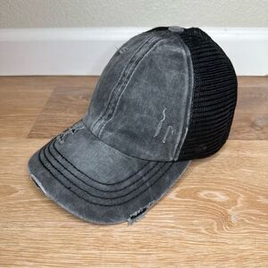 C.C Exclusives Gray Distressed Criss Cross Back Ponytail Hat