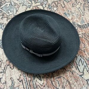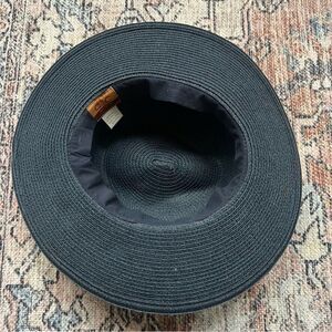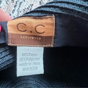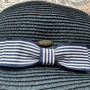 C.C Exclusives Navy Blue Straw Sun Hat with Striped Band Bow NWOT