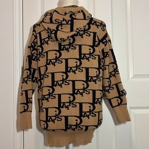 CC Fashion Brown/Black Paris Hoodie Size L/XL. Very Dior looking. Gently used excellent condition. 3/4” sleeves with ribbed cuff and hem. See pictures for measurements and fabric content.