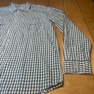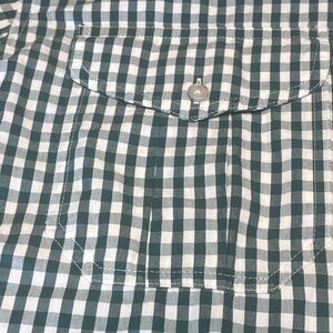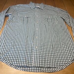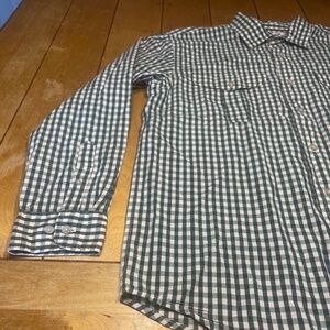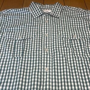 CC Filson Button Up Long Sleeve Shirt Green Gingham Size Large Two Front Pockets