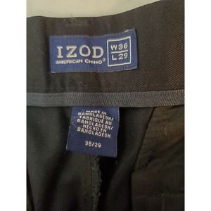 CC - IZOD Dress American Chino Pants Men 36 X 29 Solid Black Slim Flat Front NWT