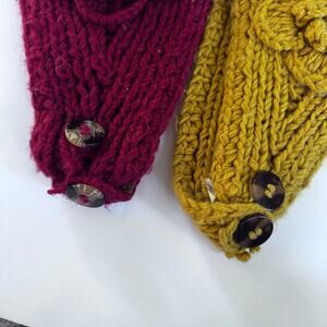 Stay cozy and stylish this fall and winter with this adorable C. C. Knit Headband! This headband is perfect for keeping your ears warm while adding a touch of floral charm to your look. The knit material is soft and comfortable, and the two-button design ensures a snug and perfect fit. The delightful flower detail adds a pop of color and personality. The headband features a lovely combination of red and yellow hues, perfect for complementing your favorite autumn and winter outfits.