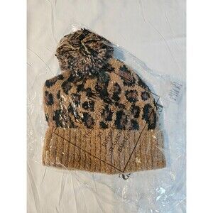 C.C. Leopard Print Soft Knit Beanie With Pom Pom NWT