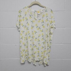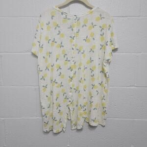 A cute lemon print tee with back buttons by c&c california in size 1x.