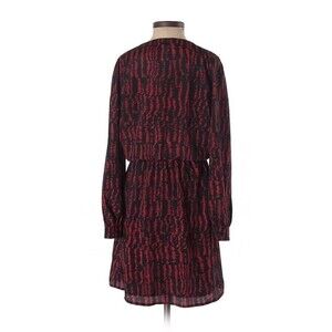 CC Pleated A-Line Fit Flare Red Maroon Long Sleeve V-Neck Dress Size XS