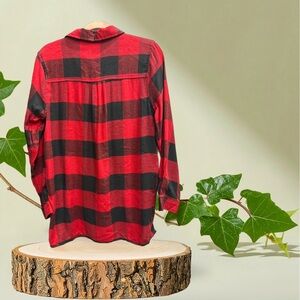 Bold checkered shirt by C.C. Ideal for everyday style. Adorable double button detail on each side. Perfect with black leggings or denim jeans. It can be casual or cool depending on your mood.