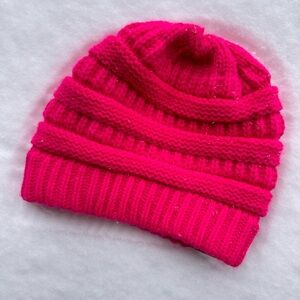C.C Soft Stretch Cable Knit hot pink, neon pink hat, One Size