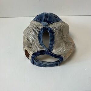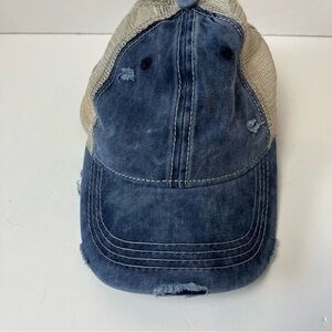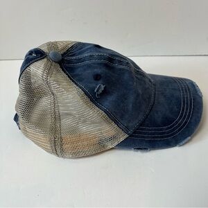 CC Trucker Style Vintage Distressed Denim Hat with Ponytail Hole