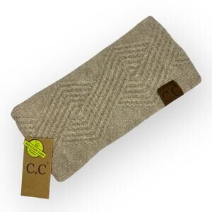 C.C Winter Thick Knitted Diagonal Stripes Headband Headwrap Tan Recycled Yarn