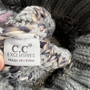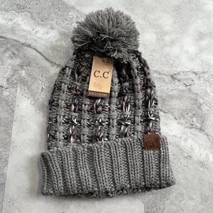 C.C Winter Warm Chunky Thick Ombre Double Slipstitch Knit Pom Cuff Beanie gray.
