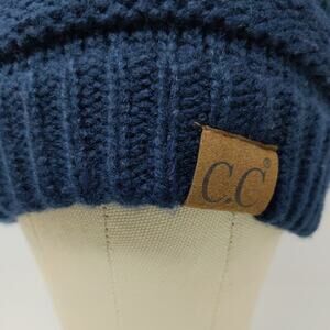 C.C. Women's Cable Knit Beanie Hat Blue Pom Pom Soft Warm 100% Acrylic