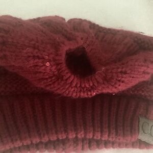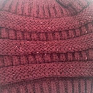 C.C Women’s Red Sequin Beanie w/ Ponytail Hole NEW WITHOUT TAGS