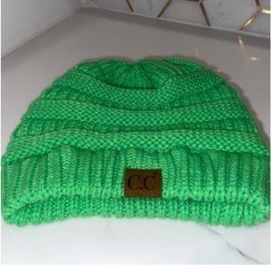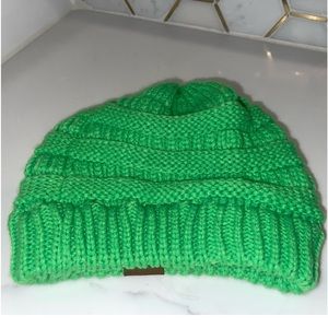 CC beanie in a bright green color
