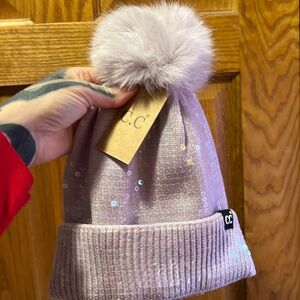 Light purple color, lilac hat with pom-pom BY C.C brand new with tag