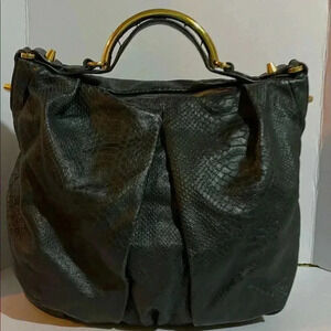 CC skye black reptile leather satchel handbag main compartment 3 pockets at interior wall 1 zip closure & zip closure at top fabric lining gold tone hardware logo at hardware exterior some creasing hight logo 13” width 18” depth 6” strap drop 11” The dimensions are based on approximately measurements before placing an order please check take a moment to view all photos using feature for a closer look