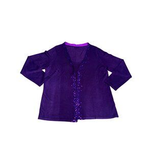CCC Detailed Purple Sequined Long Sleeve 1990s Vintage Knit Cardigan Size Medium