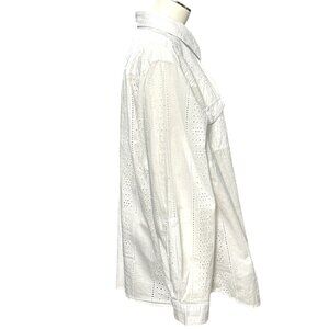 CCC Vintage White Long Sleeve Cotton Eyelet Button Up Shirt With Pockets Size XL
