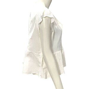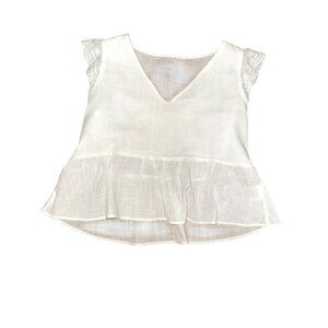 CCC White Cotton V Neck Peplum Crop Top Lace Cap Sleeves Size Medium Boho Chic
