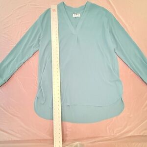CCH Collection Green/Blue Oversized Long Sleeve V-neck Blouse Size Medium
