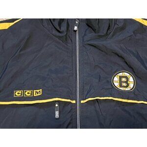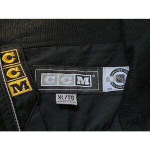 Stylish CCM performance jacket. Black with yellow accents. Full zip front. Ideal for outdoor activities.