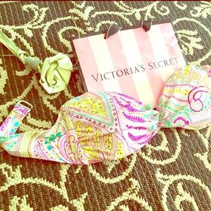 Victoria's Secret Bandeau Gypsy style bikini top with gorgeous bright psychedelic paisley print & w removable pads included, along w removable strap.