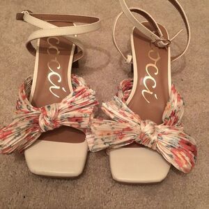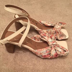 Step into elegance with these floral block heel sandals. Perfect for any occasion, these shoes feature a beautiful floral pattern with cream accents. The comfortable block heel ensures all-day wearability.
