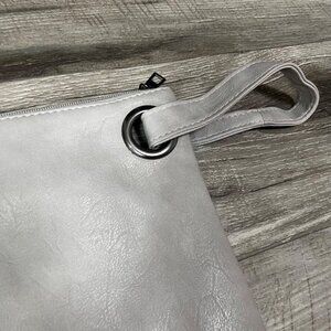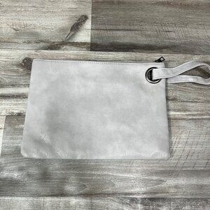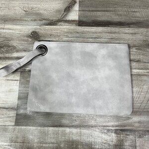 CC-US Oversized Envelope Clutch Handbag Soft Leather Grey Size 12” x 9”