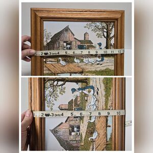 C.Carson Framed Serigraph Vintage Oil Painting Barn Girl with Geese Amish Folk Farm Signed.