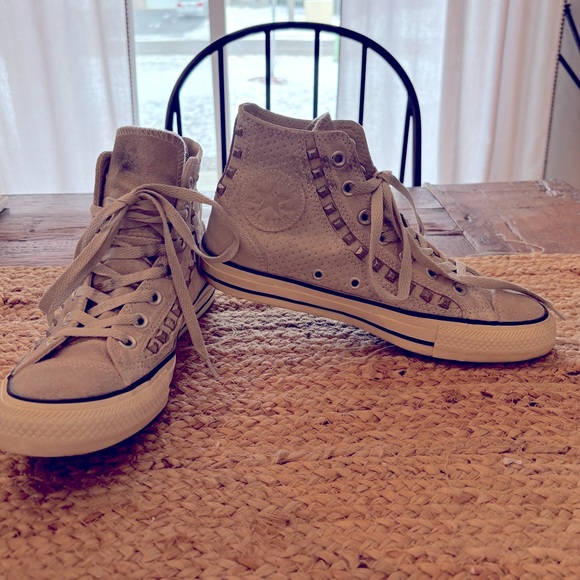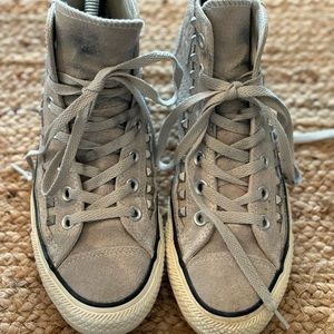 CConverse Chuck Taylor Sz 8 Womens All Star Grey Suede Leather Studded High Top